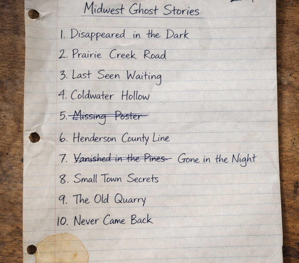 Recording a 10-track folk album inspired by true crime podcasts and Midwestern gothic literature. Wanted each song to tell the story of a real unsolved disappearance from small towns in Illinois, Iowa, and Wisconsin. Planned to self-release digitally and press 500 vinyl copies.